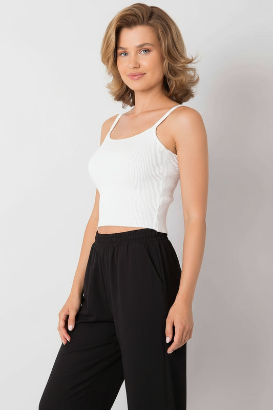 Hvit Ribbestrikket Top – Elegant, Myk og Allsidig