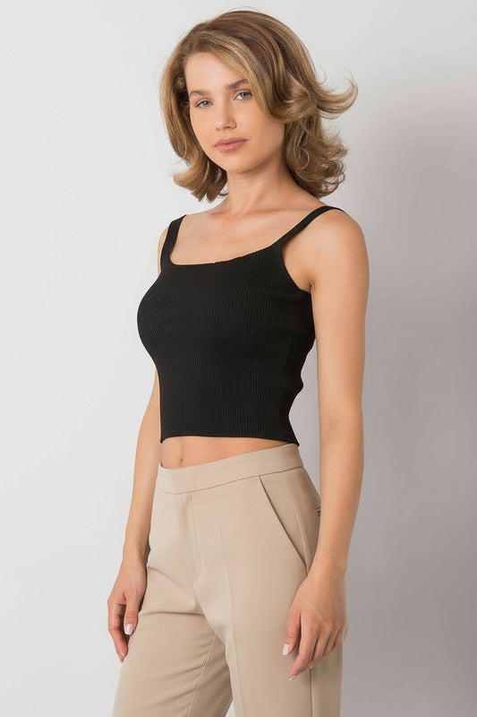 Svart Ribbestrikket Top – Elegant og Allsidig Stil