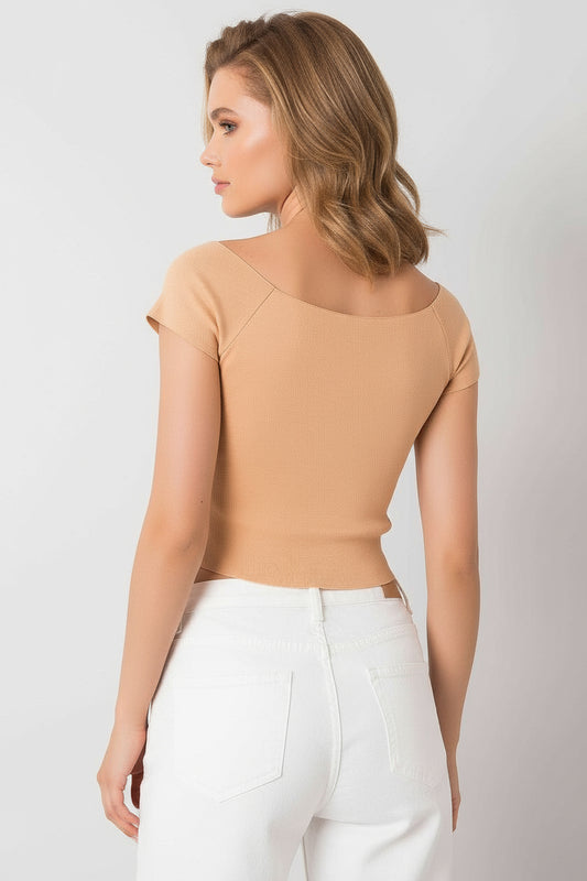 Blå Ribbestrikket Top – Asymmetrisk og Feminin Stil